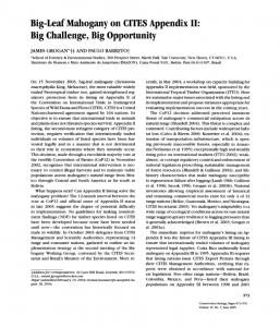 Grogan, J., & Barreto, P. 2005. Big-Leaf Mahogany on CITES Appendix II : Big Challenge , Big Opportunity. Conservation Biology, 19(3), 973-976. Retrieved