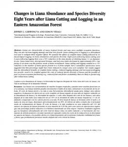 | Título | CHANGES IN LIANA ABUNDANCE AND SPECIES DIVERSITY EIGHT YEARS AFTER LIANA CUTTING AND LOGGING IN AN EASTERN AMAZONIAN FOREST |