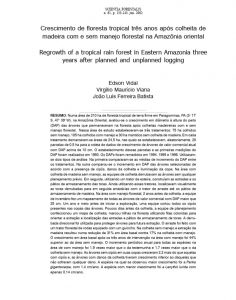 VIDAL, Edson; VIANA, Virgílio Maurício; BATISTA, João Luís Ferreira. Crescimento de floresta tropical três anos após colheita de madeira com e sem manejo florestal na Amazônia oriental. Scientia Forestalis, n. 61, p. 133-143, jun. 2002.