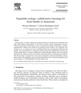 Shanley, P., & Gaia, G. 2002. Equitable ecology: collaborative learning for local benefit in Amazonia. Agricultural Systems, 73(1), 83-97.