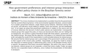 | Título | How government preferences and interest group interaction can affect policy choice in the Brazilian forestry sector |