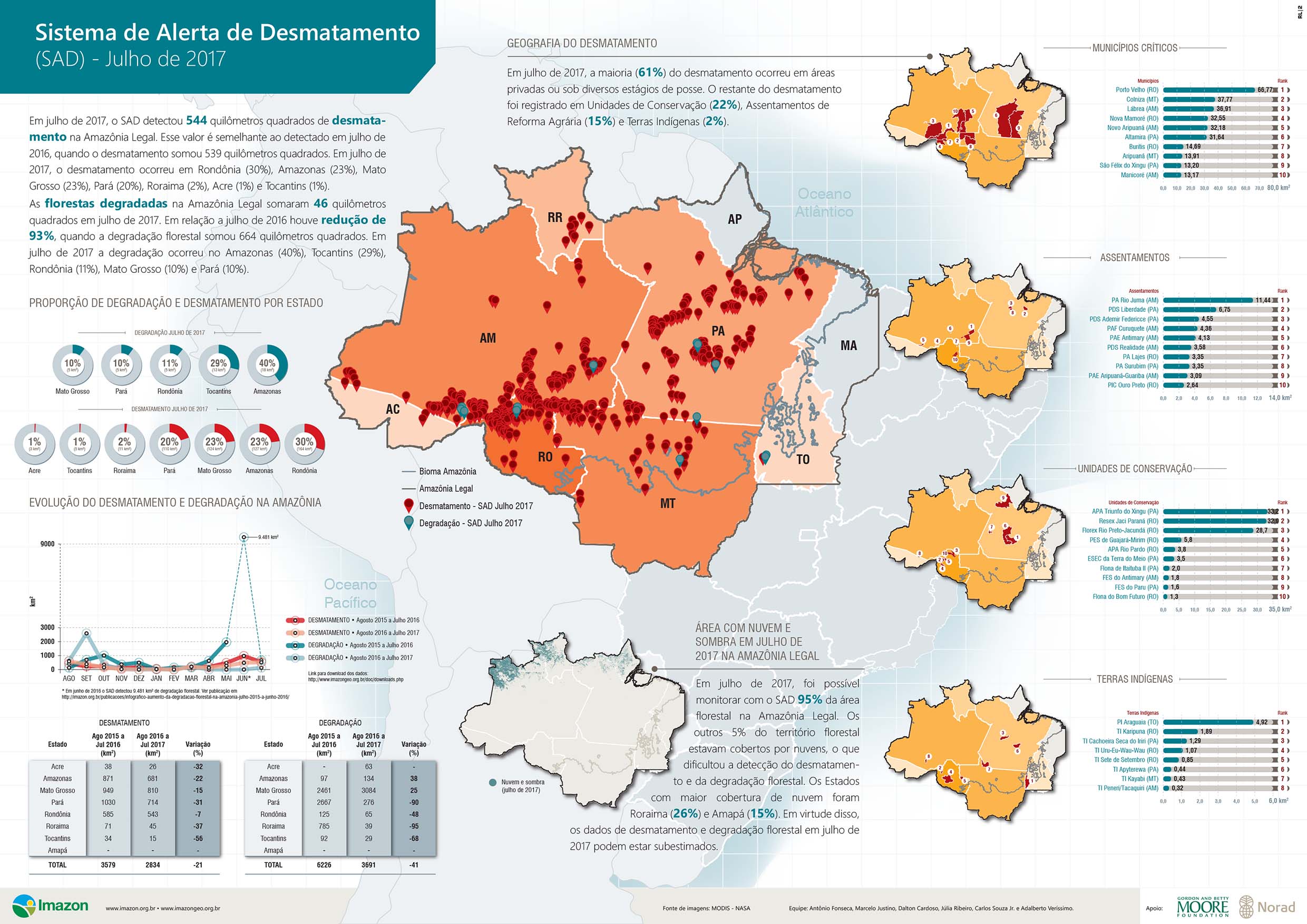 Fonseca, A., Justino, M., Cardoso, D., Ribeiro, J., Souza Jr., C., & Veríssimo, A. 2017. Boletim do desmatamento da Amazônia Legal (julho de 2017) SAD (p. 1). Belém: Imazon.