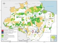 Hayashi, S., Souza Jr., C., Sales, M., & Veríssimo, A. (2011). Boletim Transparência Florestal Amazônia Legal (Abril de 2011) (p. 15). Belém: Imazon. O desmatamento acumulado no período de agosto de 2010 a abril de 2011, correspondendo aos nove primeiros meses do calendário atual de desmatamento, totalizou 1.270 quilômetros quadrados. Houve um aumento de 19% em relação ao mesmo período anterior (agosto de 2009 a abril de 2010) quando o desmatamento somou 1.065 quilômetros quadrados. Em abril de 2011, o SAD detectou 298 quilômetros quadrados de desmatamento na Amazônia Legal. Isso representou um aumento de 362% em relação a abril de 2010 quando o desmatamento somou 65 quilômetros quadrados. A grande maioria (81%) ocorreu em Mato Grosso como já havia sido reportado no SAD Alerta. O restante ocorreu no Pará (7%), Rondônia (7%) e Amazonas (5%). As florestas degradadas na Amazônia Legal somaram 1.776 quilômetros quadrados em abril de 2011. A grande maioria (81%) dessa degradação ocorreu em Mato Grosso seguido de longe por Rondônia (18%) e o restante no Pará e Amazonas. A degradação florestal acumulada no período de agosto de 2010 a abril de 2011 totalizou 5.832 quilômetros quadrados. Em relação ao período anterior (agosto de 2009 a abril de 2010), quando a degradação florestal somou 1.263 quilômetros quadrados, houve aumento expressivo (361%). Em abril de 2011, o desmatamento detectado pelo SAD comprometeu 3,6 milhões de toneladas de CO2 equivalente o que representa um aumento de 203% em relação a abril de 2010. No acumulado do período (agosto 2010 a abril 2011) o desmatamento comprometeu 73,6 milhões de toneladas de CO2 equivalentes e representou um aumento de 5,7% em relação ao período anterior (agosto de 2009 a abril de 2010). Foi possível monitorar com o SAD apenas 31% da área florestal na Amazônia Legal em abril de 2011. Os outros 69% estavam cobertos por nuvem o que dificultou o monitoramento na região principalmente no Pará, Amazonas, e Amapá. Baixe aqui o arquivo