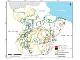 Souza Jr., C., Veríssimo, A., Costa, A., Salomão, R., & Brandão Jr., A. (2007). Boletim Transparência Florestal Estado do Pará (Agosto de 2007) (p. 10). Belém: Imazon. Este é o primeiro número do boletim Transparência Florestal do Estado do Pará, uma iniciativa do Imazon, cujo objetivo é divulgar amplamente a situação do desmatamento nas áreas florestais do Estado. Neste boletim, resumimos as estatísticas de desmatamento, localizamos as áreas desmatadas no Estado e identificamos os municípios mais desmatados e a perda ilegal de florestas nas Áreas Protegidas. Para isso, utilizamos dados de desmatamento gerados pelo Sistema de Alerta de Desmatamento (SAD) desenvolvido pelo Imazon e dados fornecido pelo Inpe por meio do Programa de Monitoramento da Amazônia (Prodes). De acordo com o SAD, o desmatamento em agosto de 2007 no Estado do Pará alcançou 196 quilômetros quadrados (19.600 hectares). Isso representou uma queda de 54% em relação ao mês de agosto do ano anterior (2006) quando o desmatamento atingiu 426 quilômetros quadrados (42.600 hectares). Por sua vez, o numero de focos de calor aumentou 15%, passando de 1.674 números focos de calor em agosto de 2006 para 1.920 focos de calor no mesmo mês de 2007. A maioria (65%) do desmatamento detectado pelo SAD ocorreu em Áreas Protegidas, principalmente nas Unidades de Conservação e Terras Indígenas localizadas na Terra do Meio e BR-163. O desmatamento nos Assentamentos de Reforma Agrária representou apenas 3% enquanto o restante (32%) ocorreu em outras áreas do Pará não-protegida (em geral, áreas privadas ou sob diversos estágios de posse). Desse total, pelo menos 65% do desmatamento em agosto de 2007 foi ilegal, pois ocorreu em Áreas Protegidas. No acumulado do calendário oficial do desmatamento (a contagem sempre começa em agosto de um ano até julho do ano seguinte), o desmatamento total detectado pelo SAD no Pará para o período de agosto de 2006 a julho de 2007, alcançou 1.726 quilômetros quadrados (172.600 hectares). A maioria (73%) do desmatamento ocorreu em áreas privadas ou sob diversos estágios de posse. A perda de floresta nas Unidades de Conservação foi significativa atingindo 21% do total enquanto nas Terras Indígenas representou 3% e outros 3% ocorreram nos Assentamentos de Reforma Agrária. Baixe aqui o arquivo