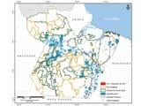 Souza Jr., C., Veríssimo, A., Costa, A., Salomão, R., & Brandão Jr., A. (2008). Boletim Transparência Florestal Estado do Pará (Março de 2008) (p. 5). Belém: Imazon. No Pará, o desmatamento detectado pelo Sistema de Alerta de Desmatamento (SAD) atingiu 65 quilômetros quadrados nos três primeiros meses de 2008 (janeiro a março). Esse valor foi mais do que o dobro da área desmatada no mesmo período de 2007 quando totalizou 28 quilômetros quadrados. No acumulado do calendário anual de desmatamento (agosto 2007 a março de 2008), a área total desflorestada atingiu 1.362 quilômetros quadrados.Isso representa um aumento de 76% em relação ao mesmo período do ano anterior (agosto de 2006 a março de 2007) quando o desmatamento somou 775 quilômetros quadrados. De janeiro a março de 2008, a maioria (93%) do desmatamento ocorreu em áreas privadas ou sob diversos estágios de posse. A perda de floresta nos Assentamentos de Reforma Agrária representou de 7%. Não foram detectados desmatamentos nas Áreas Protegidas (Terras Indígenas e Unidades de Conservação) nesse período. Os municípios que mais desmataram nesse período foram Ulianopólis (28% do total) seguido de Paragominas (20%) e Dom Eliseu (10%). Todos localizados na Belém-Brasília e incluídos na lista dos municípios críticos do Ministério do Meio Ambiente. Por se tratar de período chuvoso, a proporção de nuvens sobre o território do Pará: 68% (janeiro), 69% (fevereiro) e 72% (março). Isso significa que os valores obtidos para o desmatamento nesses três meses estão subestimados. Esta e outras edições do Boletim Transparência Florestal, além de mapas e gráficos utilizando o dados do SAD, podem ser acessados de maneira interativa no ImazonGeo ( www.imazongeo.org.br ). Baixe aqui o arquivo