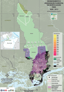 Fonseca, A., Justino, M., Siqueira, J., Ribeiro, J., & Souza Jr., C. 2014. Desmatamento e Degradação Florestal em Monte Alegre - Pará (2000-2013) (p. 2). Belém: Centro de Geotecnologia do Imazon (CGI). Baixe aqui o arquivo