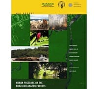 Versão em inglês do livro Pressão humana na floresta amazônica brasileira. Quase metade da floresta amazônica está sob pressão humana de várias atividades conforme dados do relatório lançado hoje pelo Imazon e World Resources Institute (WRI). O relatório Human Pressure on the Brazilian Amazon Forests analisa várias atividades humanas na região até 2002 e os números preliminares de 2005 mostram que tais atividades cresceram cerca de 8% desde então.
