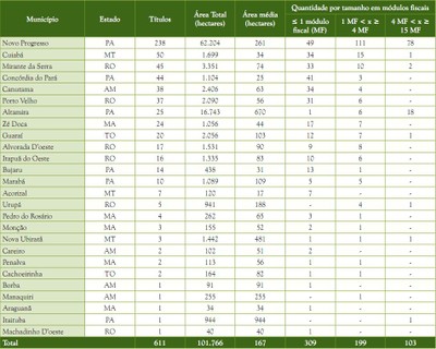 Segundo levantamento do MDA, há pelo menos quinze tipos de títulos que foram emitidos na Amazônia nas últimas décadas, que podem chegar a 120 mil casos em 15 milhões de hectares, sendo a maioria no Pará. Os tipos de títulos emitidos foram: