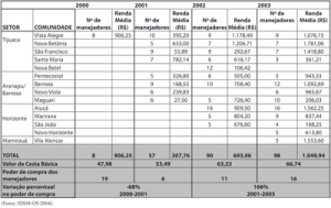 “Avaliando-se o grau de capacitação das associações do setor Tijuaca ao longo dos anos, nota-se um sensível progresso referente à sensibilização da necessidade de treinamentos na comunidade Vista Alegre (outra comunidade participante do MFC). Isto provavelmente é devido ao fato de um promotor comunitário da equipe técnica ser residente local” (IDSM 2002b: 4).