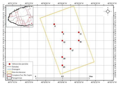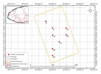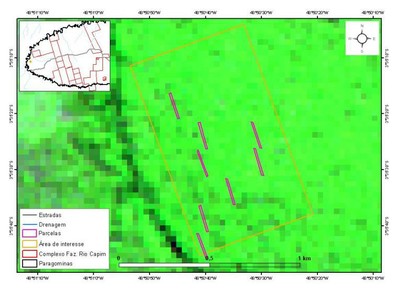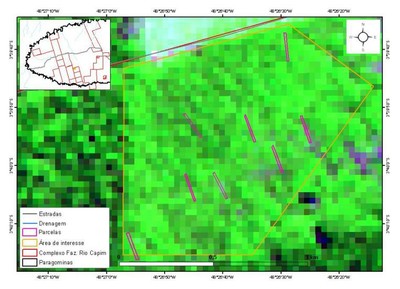 Após a análise temporal das imagens Landsat e da verificação das áreas em campo, foi possível identificar a idade das florestas estudadas. Foram selecionados seis tipos de floresta: florestas secundárias de 4, 10, 15, 20 e 25 anos de idade, mais uma floresta primária. Após esta identificação, foi realizada a demarcação de parcelas experimentais, embasado na metodologia de amostragem aleatória, para o inventário florestal. Foram instaladas 48 parcelas, sendo 32 no complexo Fazenda Rio Capim e 16 na bacia do Rio Uraim (8 parcelas para cada diferente idade de floresta).