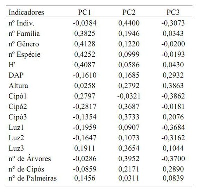 Abandonment of areas designed for land use may lead to the formation of secondary forests. A large-scale mapping carried out by INPE showed that 18.4% of deforested areas in the Amazon are already in regeneration. Hence their importance for forest restoration considering, for example, their role in global climate changes by the accumulation of carbon in their tissues during growth. However, in a well-planned forest restoration project it is necessary to define parameters (indicators) that will assess whether the goals of restoration have been accomplished or if its objectives are being achieved. Thus, the purpose of this study is to compare secondary forests by ecological indicators developed from their structural and functional characteristics and answer the following questions: (i) does the analysis of indicators confirm the hypothesis that the older the forest the greater its resemblance with the reference primary forest? And (ii) is it possible to distinguish secondary forest ages using these indicators? For that purpose, ten indicators were selected to compare six forest ages in Paragominas, Pará. They are: a primary forest and five secondary forests with 4, 10, 15, 20 and 25 years of abandonment. Principal component analysis showed a clear distinction between the different ages of forests with respect to the indicators. The behavior of the indicators shows that the intact forest is more similar to mature secondary forests and, more distant from younger secondary forests.