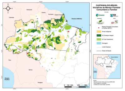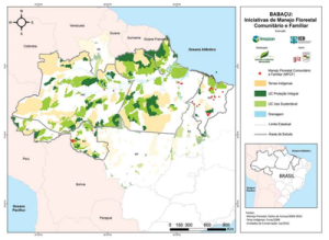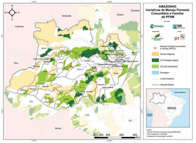 É neste contexto que se realizou o estudo “Iniciativas de Manejo Florestal Comunitário e Familiar na Amazônia Brasileira 2009/2010”, apresentado aqui. Tal estudo objetivou sistematizar as iniciativas voltadas à produção de madeira e à produção de produtos florestais não madeireiros (PFNM) de sete espécies: açaí, andiroba, babaçu, buriti, castanha-do-brasil, copaíba e seringueira (látex). O levantamento se deu em seis estados da Amazônia Legal: Acre, Amapá, Amazonas, Maranhão, Pará e Rondônia.