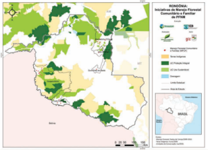 Figura 21. Iniciativas de MFCF de PFNM identificadas no estado de Rondônia em 2009/2010.