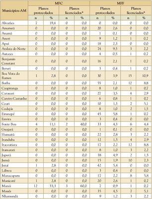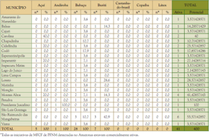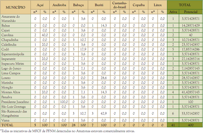 Tabela 22. Iniciativas de MFCF de PFNM identificadas no estado do Amazonas, por município, em 2009/2010.