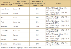 Na esfera estadual, os estados do Acre, Amazonas e Pará se destacam por suas investidas na adequação de uma regulamentação mais favorável para o MFCF, bem como no estabelecimento de programas estaduais de fomento à produção, processamento e comercialização de produtos florestais oriundos de comunidades rurais.