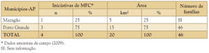 Tabela 20. Iniciativas de MFCF de PFNM identificadas no estado do Amapá, por município e status da iniciativa, em 2009/2010.