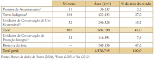 Tabela 1. Dados geográficos e socioeconômicos dos estados-alvo do levantamento das iniciativas de MFCF na Amazônia Legal em 2009/2010.