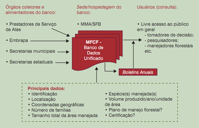 Esse Cadastro Nacional ficaria sob a gestão do Serviço Florestal Brasileiro (SFB) e os dados poderiam ser inseridos por instituições ou entidades com grande capilaridade geográfica, como secretarias municipais e/ou estaduais afins com o manejo florestal, empresas de assessoria técnica e extensão rural, sindicatos de trabalhadores rurais, instituições governamentais ou não governamentais de pesquisa etc., que seriam registradas como integrante da Rede Colaborativa. Para isso, o ideal seria a criação de um ambiente on line que pudesse ser acessado remotamente pelos parceiros da Rede, de modo que os dados poderiam ter um fluxo contínuo de atualização a um baixo custo.