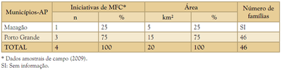 Figura 13. Iniciativas de MFCF de PFNM identificadas no estado do Amapá em 2009/2010.