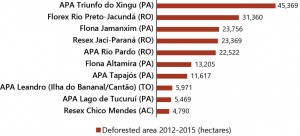 Figure 7. The 10 most deforested Conservation Units of Legal Amazon between 2012 and 2015
