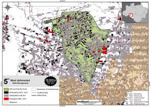 Figure 13. Map of deforestation in Jamanxim National Forest between 2012 and 2015