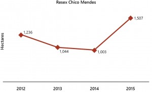 Figura 31. Deforestation in Chico Mendes Extractive Reserve between 2012 and 2015