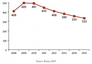 Figure 34. Number of environmental analysts from Ibama stationed in the Legal Amazon between 2008 and 2015
