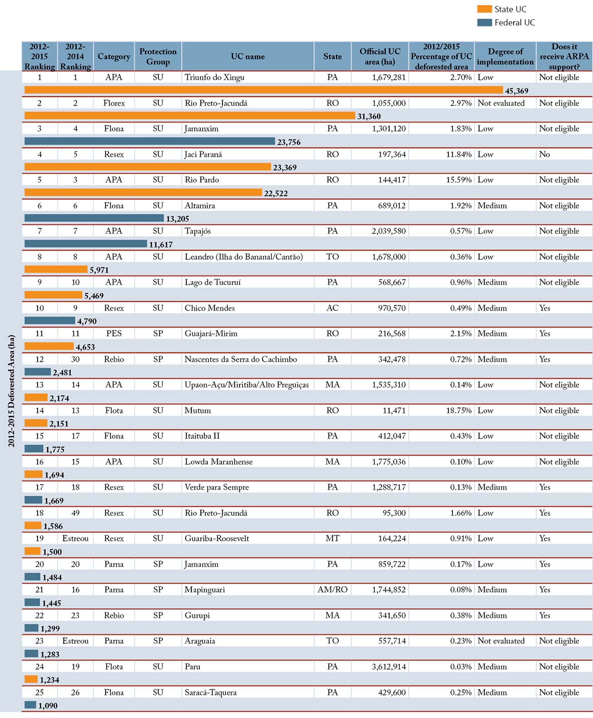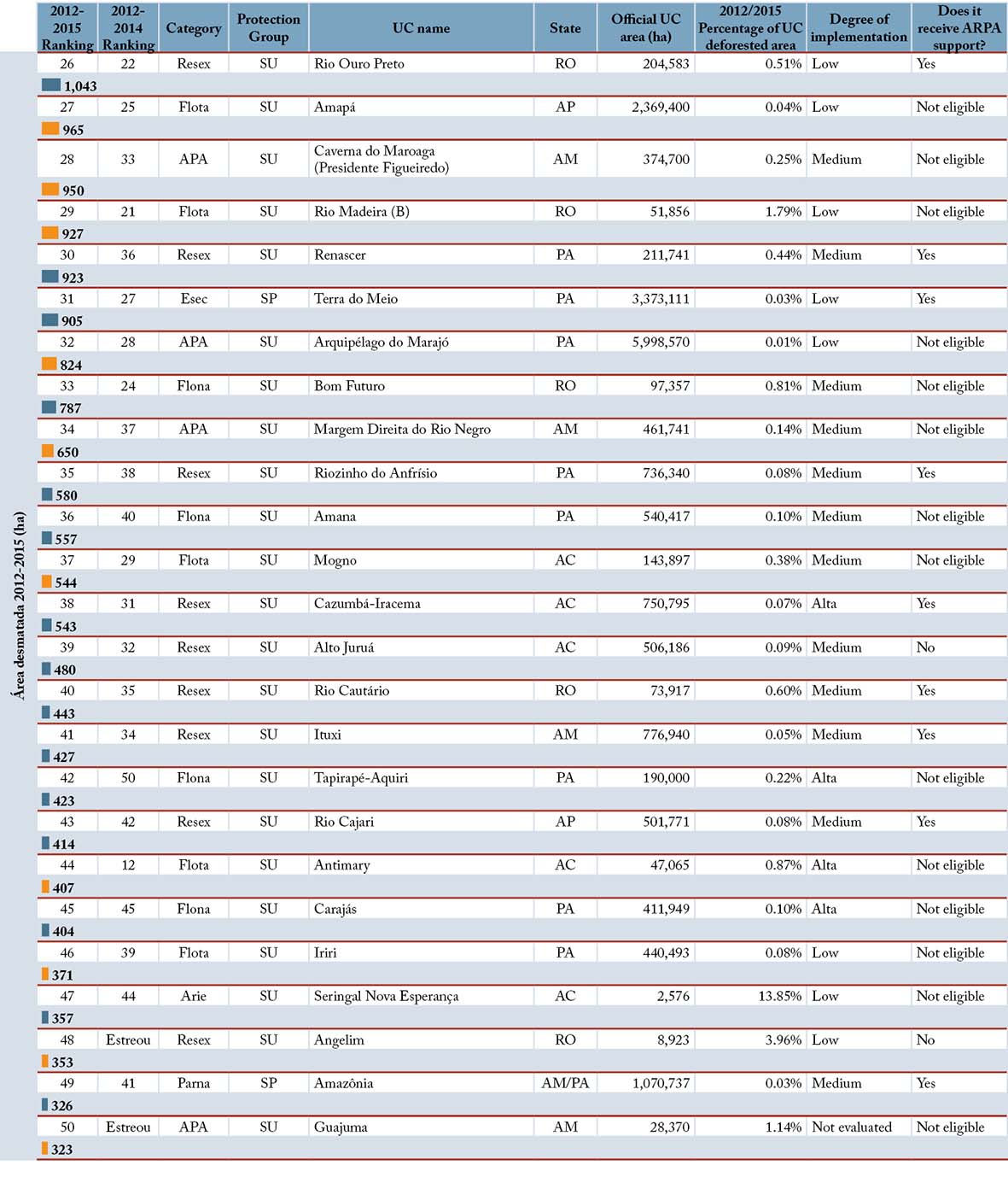 Figure 3. Ranking of the 50 most deforested Conservation Units of Legal Amazon between 2012 and 2015