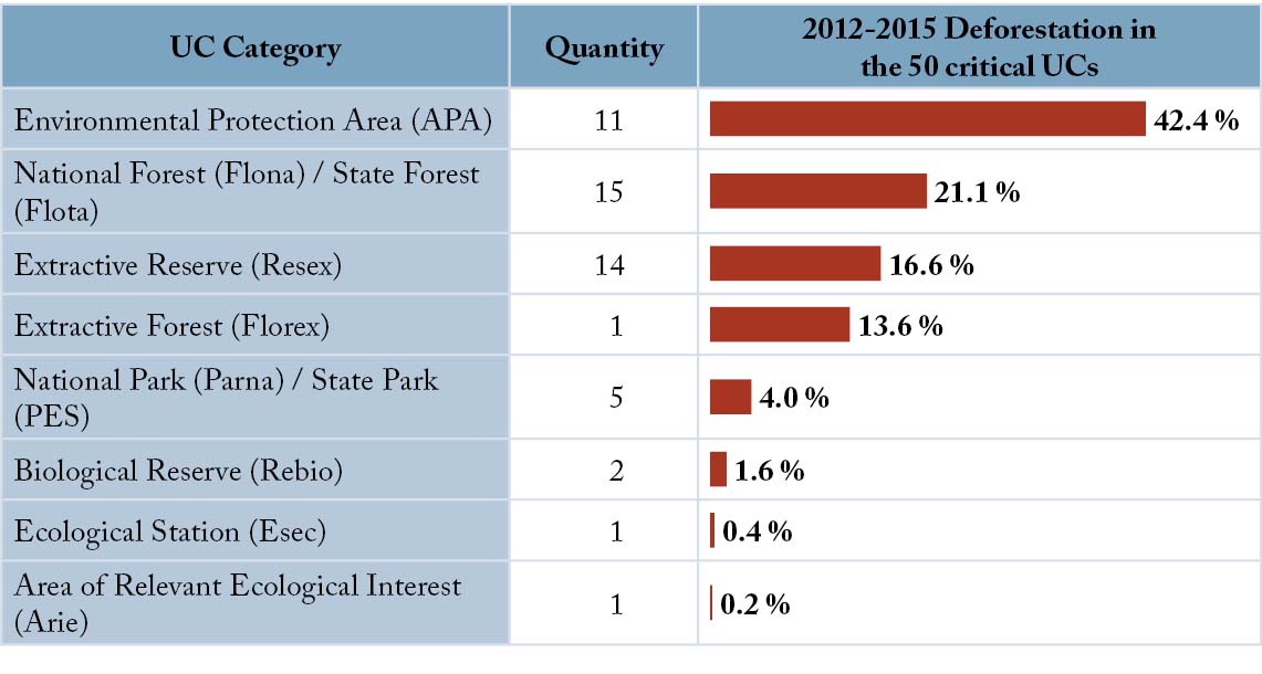 Figure 6. Categories of Conservation Units among the most deforested in Legal Amazon in the 2012 - 2015 ranking