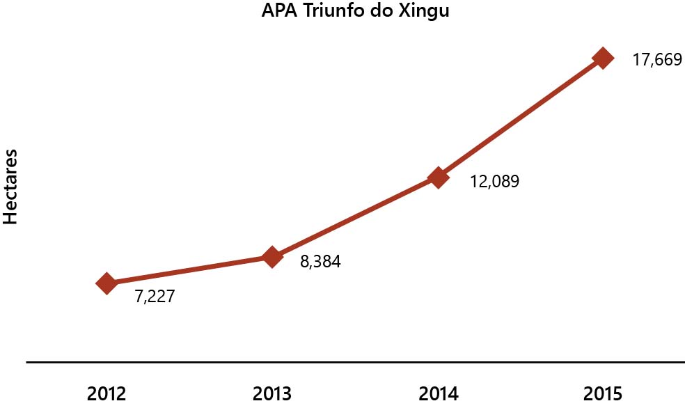 Figure 9. Deforestation in Triunfo do Xingu Environmental Protection Area between 2012 and 2015