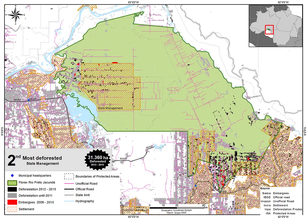 Figura 12. Deforestation in Rio Preto-Jacundá State Extractive Forest between 2012 and 2015