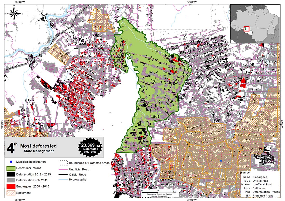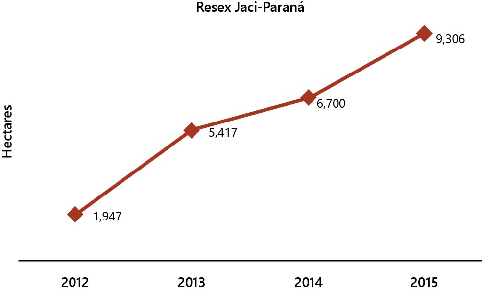 Figure 17. Deforestation in Jaci-Paraná Extractive Reserve between 2012 and 2015