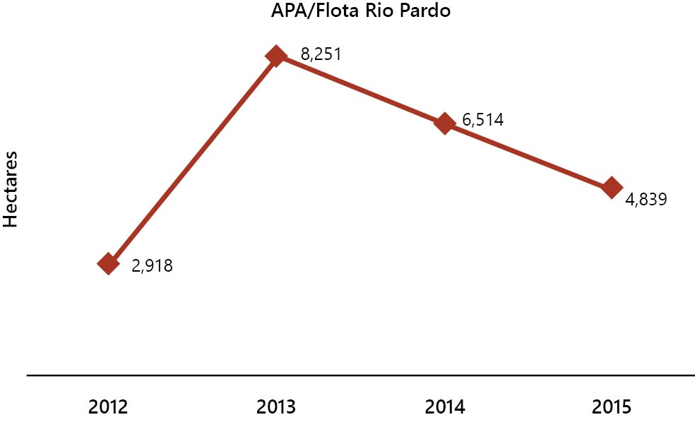 Figure 19. Deforestation in Rio Pardo State Forest and Environmental Protection Area between 2012 and 2015