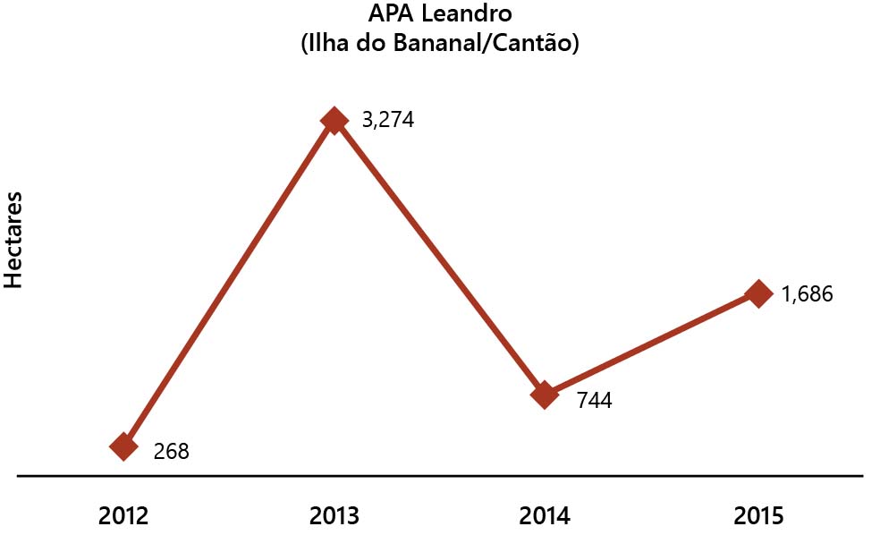 Figure 27. Deforestation in Leandro (or Ilha do Bananal Cantão) Environmental Protection Area between 2012 and 2015