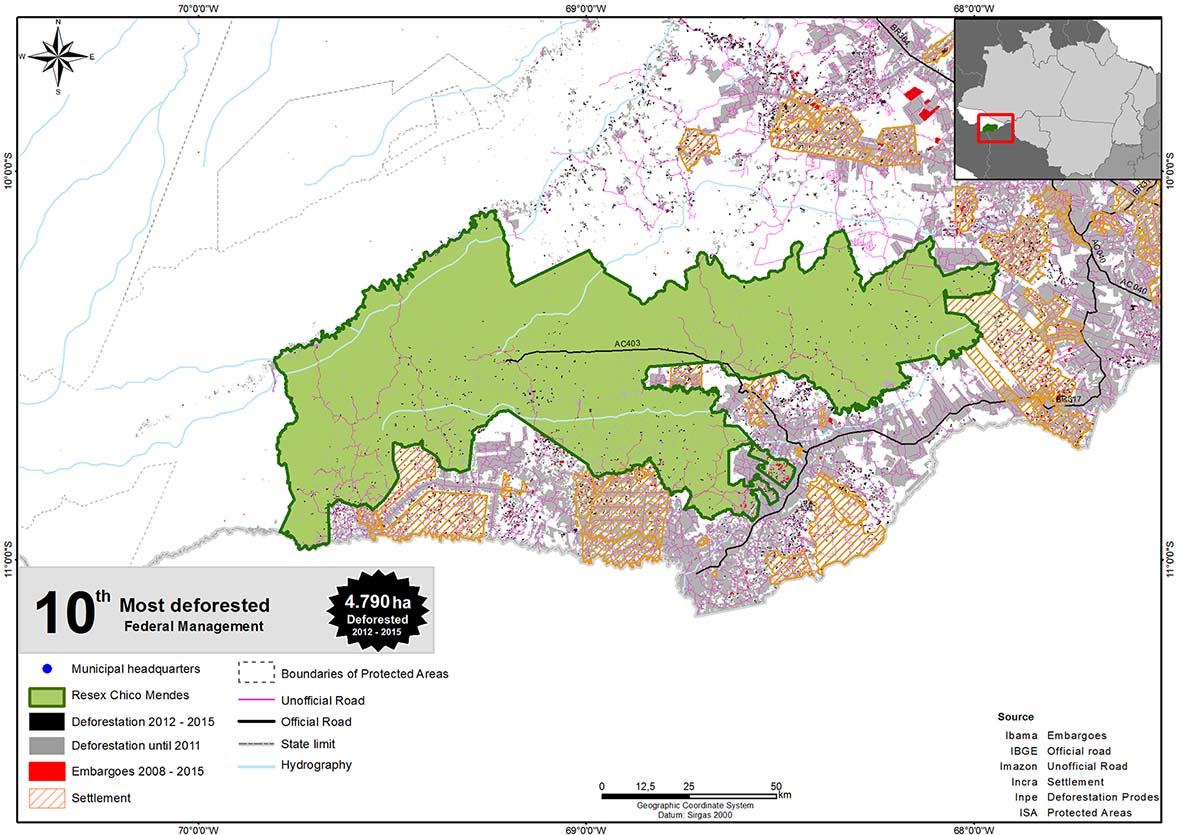 Figure 32. Map of deforestation in Chico Mendes Extractive Reserve between 2012 and 2015