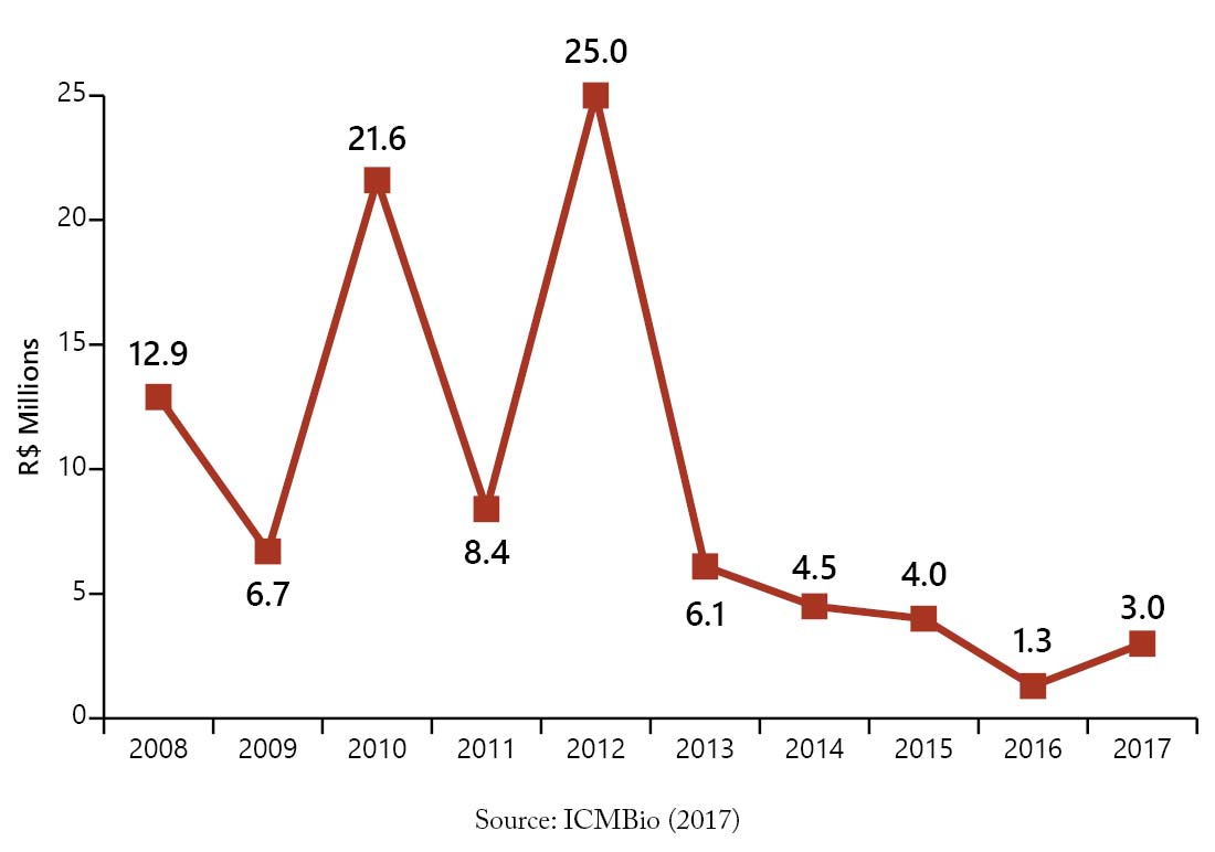 Figure 35. Budget resources of ICMBio for investment between 2008 and 2017