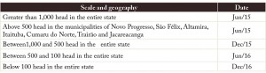 Table 2. Calendar defined by IN no. 01/2016 for Adepará to make issuing the GTA conditional on registration in CAR according to the size of the herd