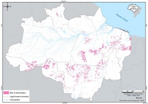 Figure 5. Areas with highest risk of deforestation projected from 2016 to 2018 in the Brazilian Amazon