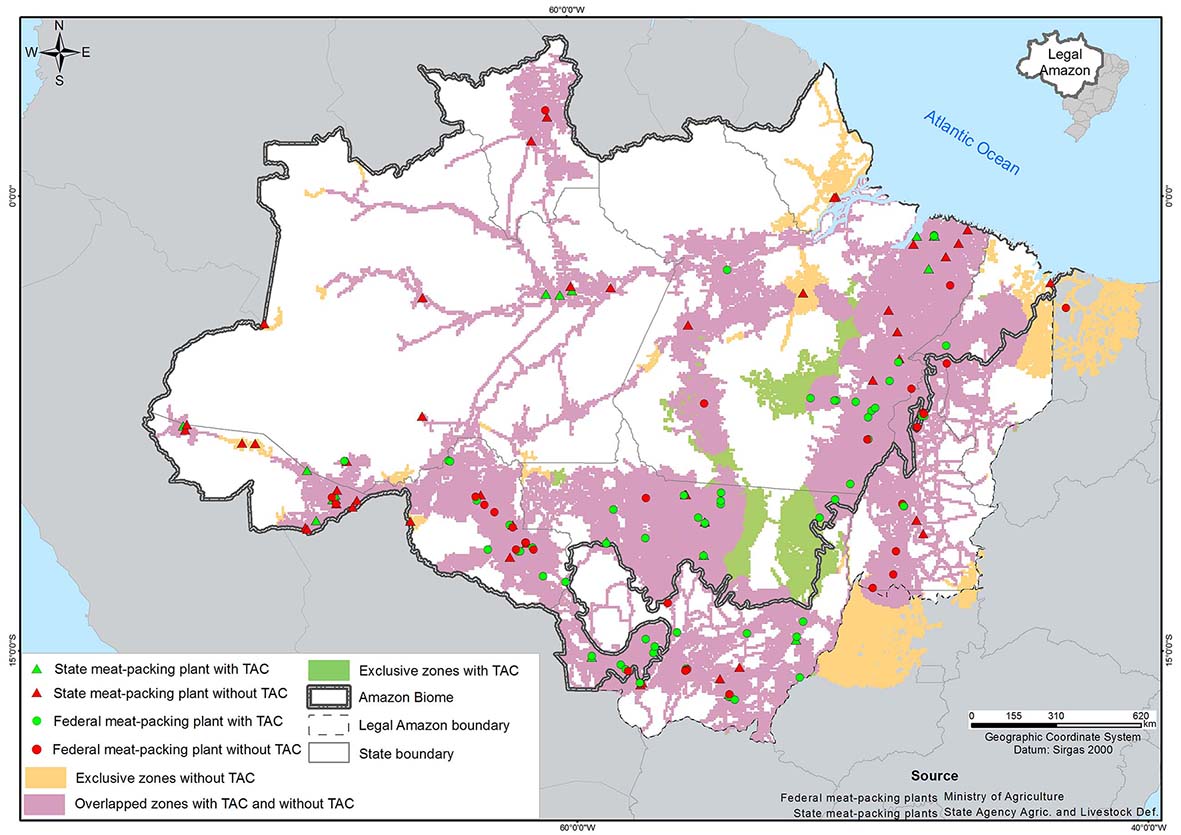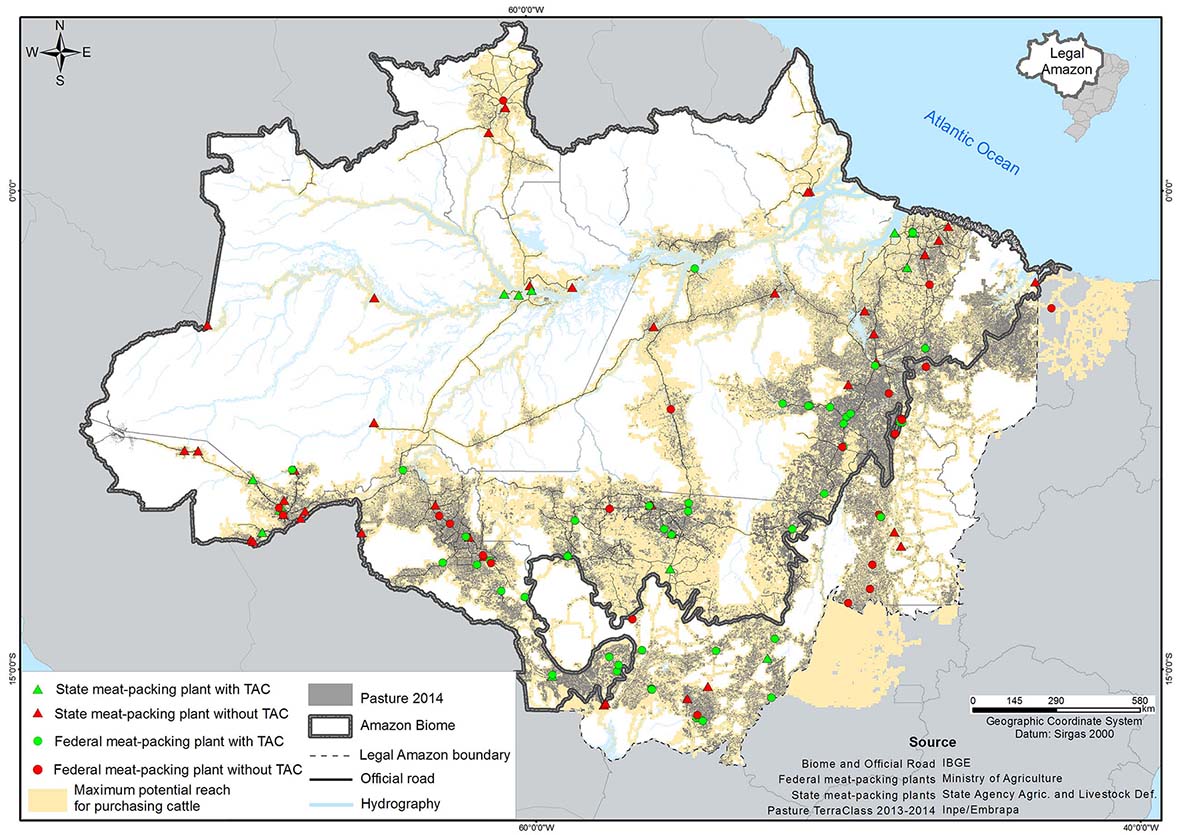 The meat-packing plants that purchase cattle in the Amazon have been pressured by environmental campaigns and lawsuits to fight the deforestation practiced by ranchers. The pressure to eliminate deforestation, legal or illegal, is growing, since this is the most polluting activity in the country if we consider gases emitted by burning forests that contribute to global warming. Some meat-packing companies have committed to buying only from ranches without deforestation occurring after 2009. Seven years after the first agreement, we went to the field to see if the meat-packing plants can in fact contribute towards eliminating deforestation in the region. Based on new data and revised studies, we demonstrate that the agreements have advanced, but many still need to be done in order for the sector to effectively contribute towards eliminating deforestation in the Amazon. In 2009, the Federal Public Prosecution Service (MPF) and the Brazilian Institute for the Environment and Renewable Natural Resources (Ibama) sued meat-packing plants in the state of Pará that were buying from embargoed ranches due to illegal deforestation and the MPF also threatened to sue companies such as supermarkets and tanning factories that continued to buy from those meat-packing plants. In the same period, Greenpeace carried out a global campaign that alerted buyers of products from meat-packing plants that were associated with illegal deforestation. In order to free themselves from criminal charges and boycotts from part of the market, several meat-packing plants, including the four largest at the time, signed settlement agreements (Conduct Adjustment Terms – TAC) with the MPF and a public commitment with Greenpeace. The TAC is a legal commitment that, if not followed, authorizes the MPF to carry out sanctions without the need for court intervention. The meat-packing plants that signed the TAC committed themselves to buying only from ranches free of deforestation after 2009, off the list for work analogous to slavery of the Ministry of Labor, registered with the Rural Environmental Registry (CAR provides a map of the ranch and information on the holder of the property and serves as an identification card for the ranch) and that are not in Protected Areas. Later on, other meat-packing plants signed TAC in other Amazon states, creating the expectation that this type of agreement may be a promising instrument against deforestation. Below, we summarize the situation with the agreements, their advances and their challenges.