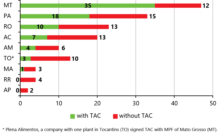 To analyze the factors that contribute to the persistence of deforestation in the Amazon after the ranching agreements, we used information from the literature and our data on: i) the signatory and non-signatory companies of TACs, with data from all the states of the Brazilian Amazon obtained from the MPF; ii) the advances and failures in ranching agreements, including the results of the three audits of the companies that signed the agreement with Greenpeace (Marfrig, Minerva and JBS[8]); and iii) the weakening of environmental policy in Brazil.